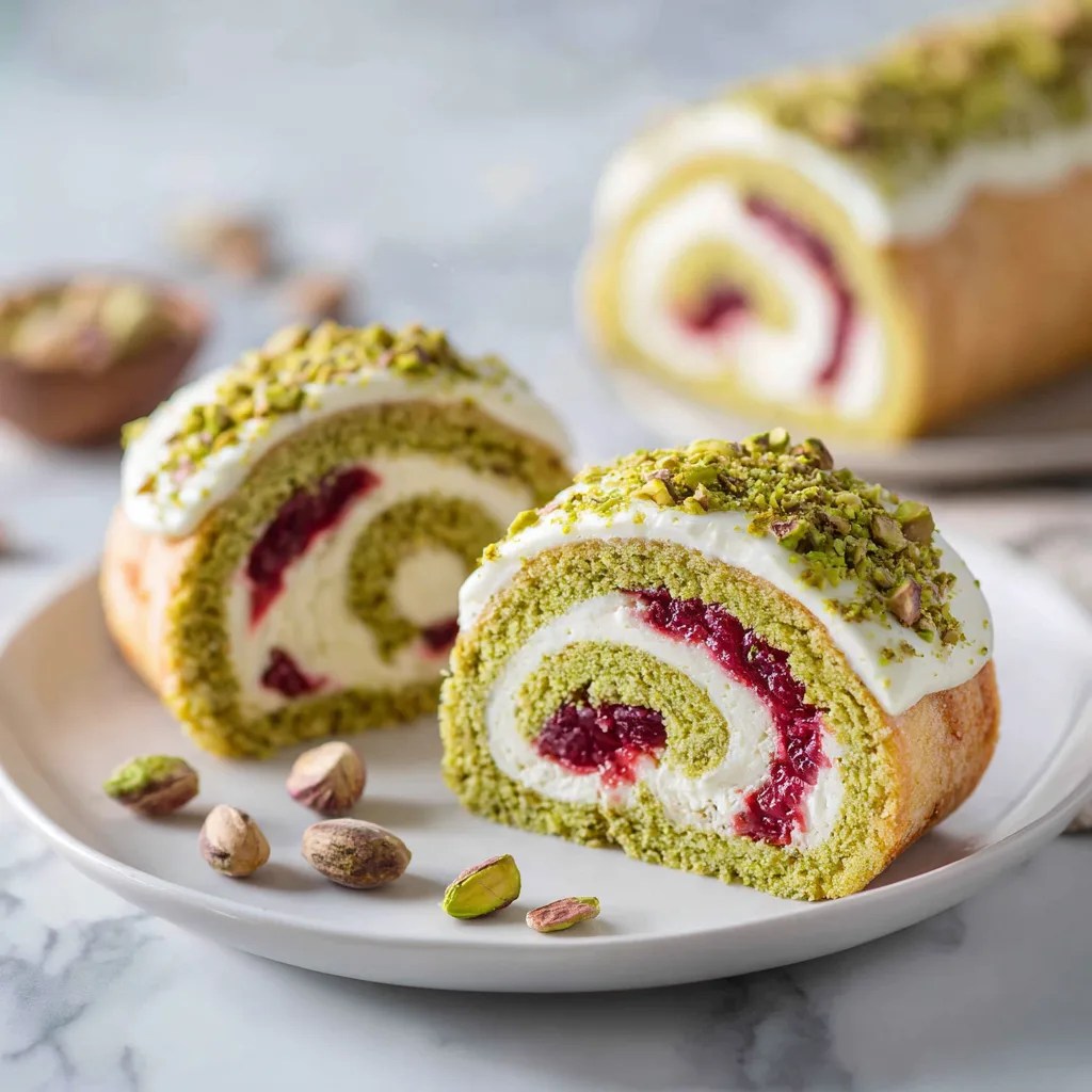 Raspberry Pistachio Swiss Roll with White Chocolate Cream – An Elegant Dessert That Steals the Show